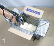 PACK & SEND offers state of the art Custom Foam packaging. This injected material expands in the box and around your item to fit any goods, providing a secure, custom cradle and cover. Your valuable goods ride in a thick, contoured cushion of aerated foam.
